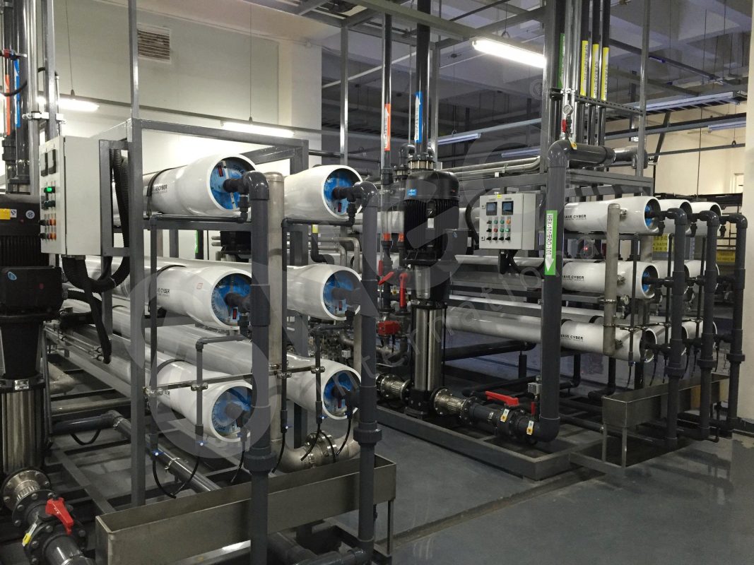 - Nước đầu vào (Nước đô thị) được bơm qua các giai đoạn xử lý ban đầu bao gồm lọc đa tầng (lọc cát, than hoạt tính) và làm mềm.