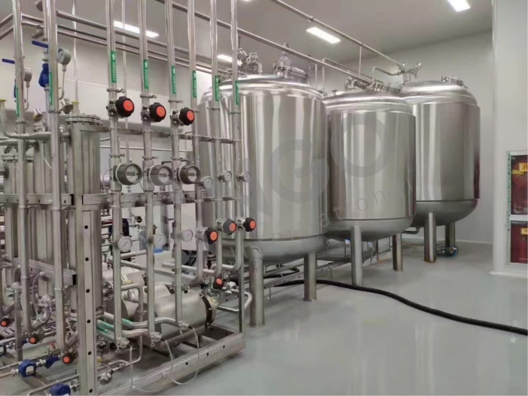 - Sau khi qua lọc UV và các giai đoạn lọc chi tiết, nước được đưa vào bể chứa nước tinh khiết để sử dụng cho sản xuất.